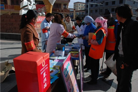 活动现场,青年志愿者开展了党团知识、妇女儿童权益保护、红十字运动、健康知识等学雷锋志愿宣传活动,县藏医院、妇幼保健站医护工作者开展了免费义诊活动。