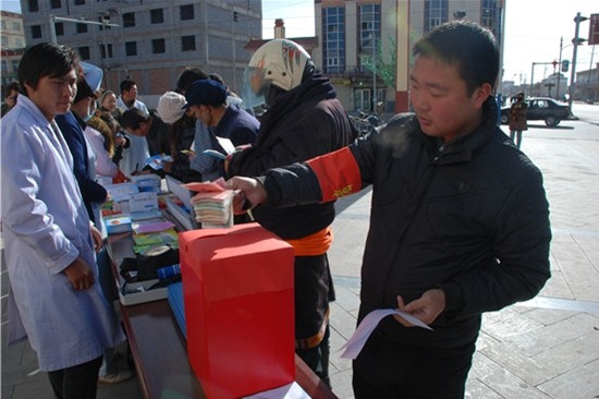 为了进一步弘扬雷锋精神,深入践行党的群众教育路线实践活动,2014年3月4日上午,刚察县红十字会、共青团刚察县委、县妇联合组织青年志愿者,开展了以“学习雷锋、奉献社会、提升自己”为主题的广场便民志愿服务活动。