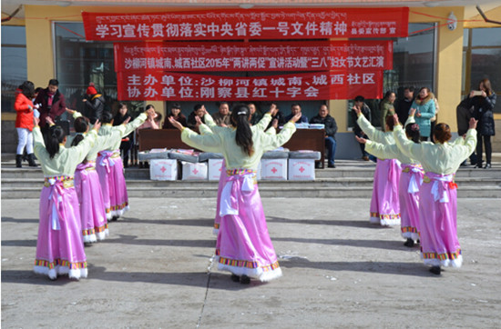 在第105个三八国际妇女节来临之际,近日,刚察县红十字会联合沙镇城南、城北社区举办了庆祝“三八”妇女节慰问及文艺演出活动。活动在刚察县沙柳河镇镇政府大院内举行。沙柳河镇镇政府、县红十字会及各社区干部群众共计80 余人参加了此次活动。