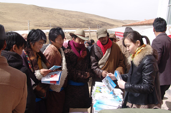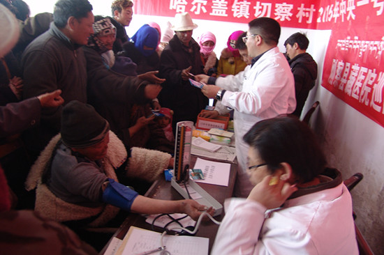 在做好宣讲工作的同时,为切实解决群众“看病难、看病远”问题,联合县藏医院医疗专家组为前来参加活动的群众免费进行义诊和健康教育咨询。期间共为112名群众进行了B超、测量血压等检查,免费发放各类药品40余种,价值2000余元,发放传染病防治、艾滋病防治、应急救护等各类健康教育宣传资料200余份。