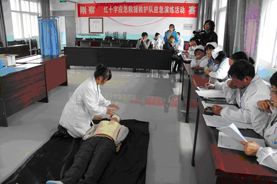24日上午,刚察县红十字会以县总工会、县卫生局联合举办的全县卫生系统职工职业技能大赛为契机,组织卫生系统应急救援救护队队员在县藏医院进行了应急救护技能演练活动,活动内容包括伤员心肺复苏、伤员搬运、创伤包扎等三个方面。县卫生局、县红十字会、县医院、藏医院相关负责人到活动现场指导,卫生系统60名医护人员观看并参与此次应急救护队技能演练。